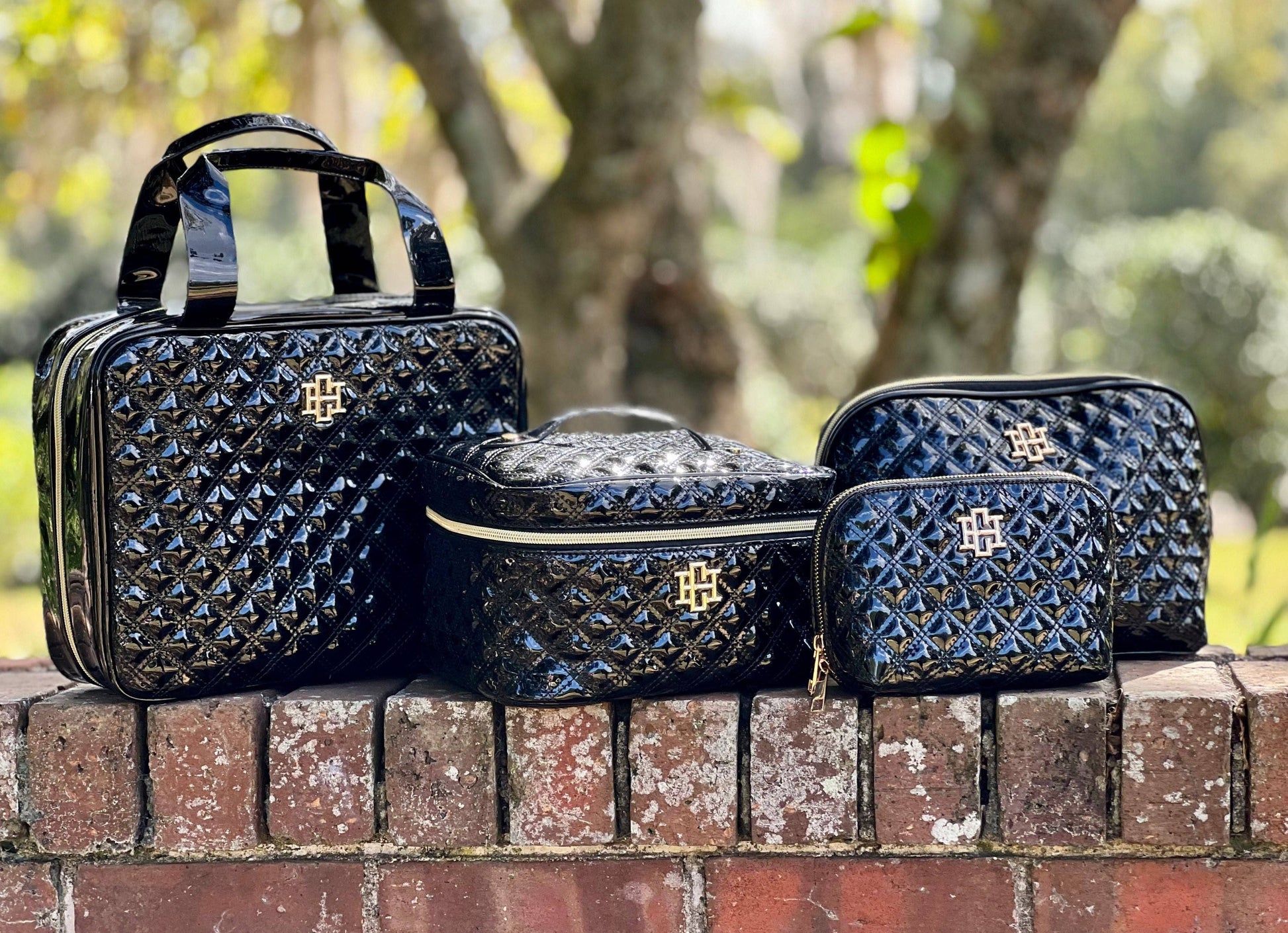 This beautiful vegan patent leather pouch is part of our makeup and travel collection and features a stylish quilted fabric design. The elongated zipper provides easy access, making it perfect for organizing makeup, toiletries, and hair accessories. The spacious interior is lined with hot pink with a clear protective fabric that is easily wipeable. It also has mesh pockets to keep cosmetics neatly stored and accessible.