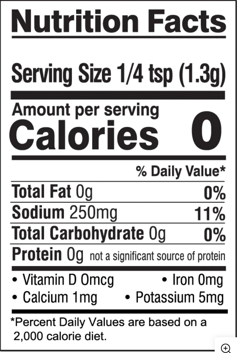 Salt, monosodium glutamate, dehydrated garlic, spices, sugar, paprika, dehydrated onion, brown sugar, 2% or less dehydrated bell peppers, chili peppers, papain, lime oil, lemon oil, citric acid, sodium citrate, and silicon dioxide