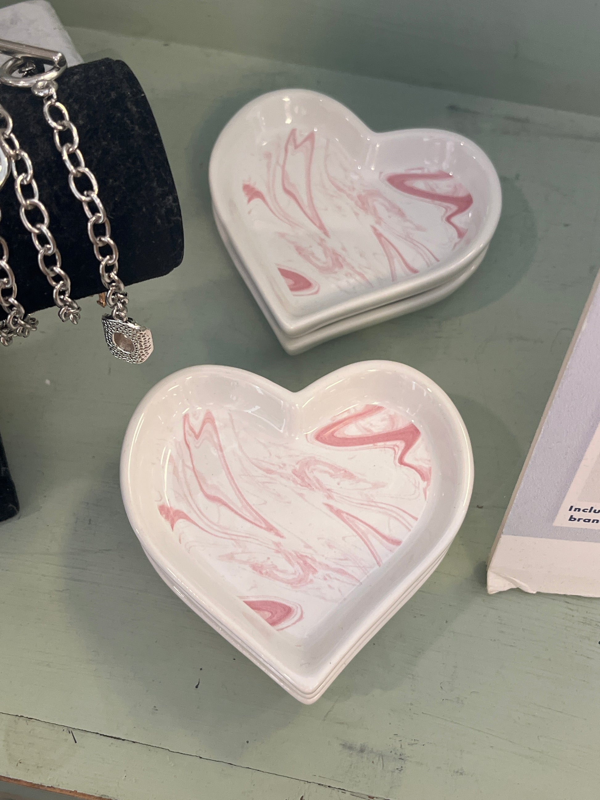 Marbled Heart Trinket Dish White/Pink 4"