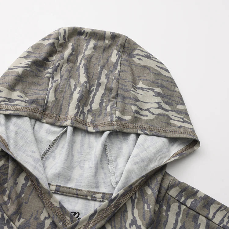 Experience ultimate comfort and protection with the OLE BOY Performance Hooded Tee in Bottomland Camo. Crafted from a super soft rayon blend, this tee is perfect for long days on the water, offering lightweight sun protection and breathable performance. Whether you're fishing or enjoying the outdoors, its camo design keeps you blending in while staying cool and comfortable.
