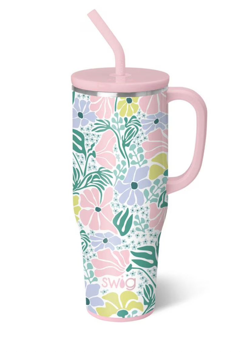 Hydrating has never been easier with our 40oz Insulated Mega Mug! A cup holder-friendly frame, a comfort-grip handle, and a plastic straw with a silicone flexi-tip all come together to create your new favorite Swig.