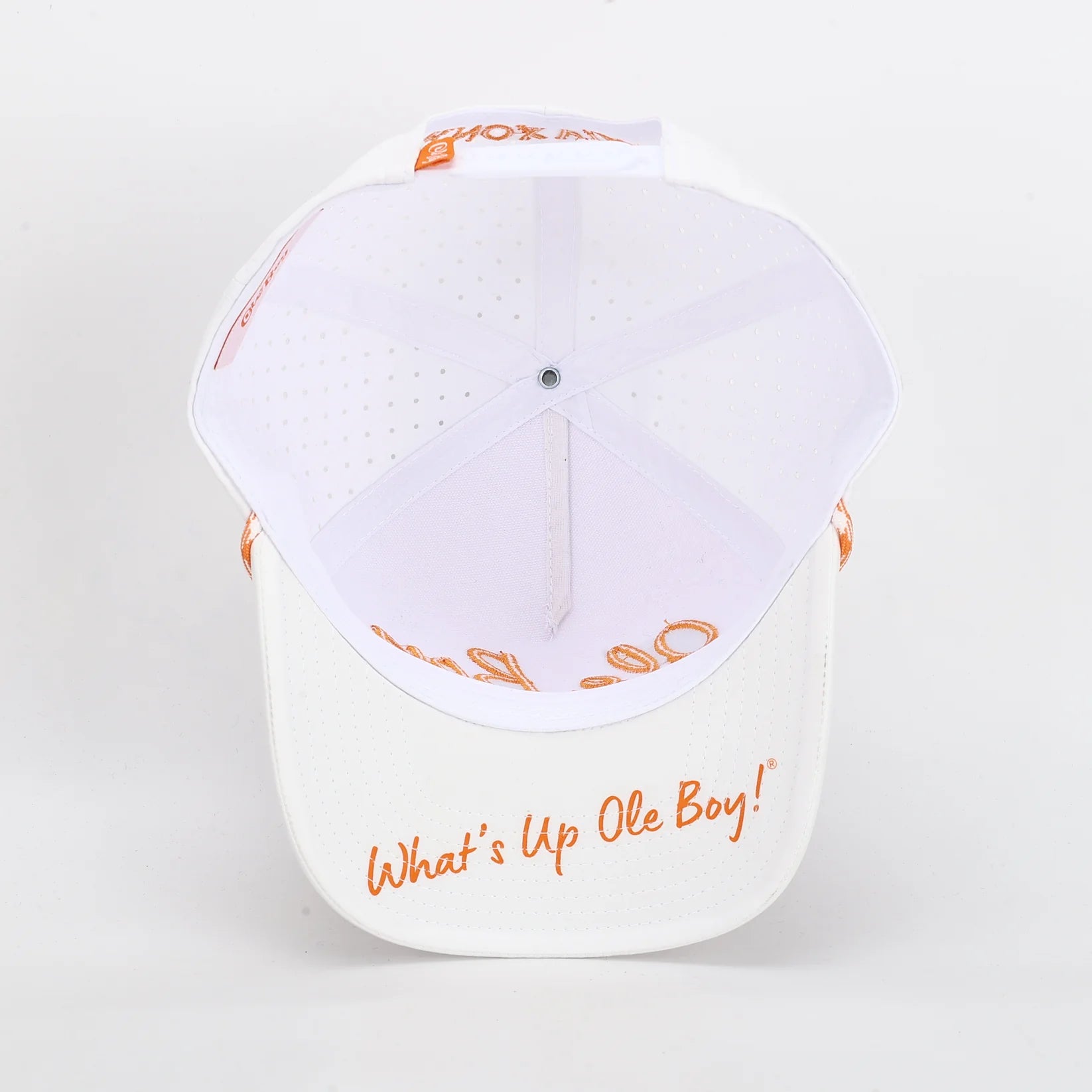 Be game-day ready with the Ole Boy Tennessee Game Day Performance Golf Hat. Embroidered with "Knoxville" on the back and the state of Tennessee on the side, this hat shows your love for Knoxville and your state pride. Featuring our trademarked "What's up Ole Boy!" on the bottom of bill, Its advanced design and lightweight materials ensure ultimate comfort and breathability. Perfect for football games, golf, or casual wear. It's the ultimate accessory for any ole boy.