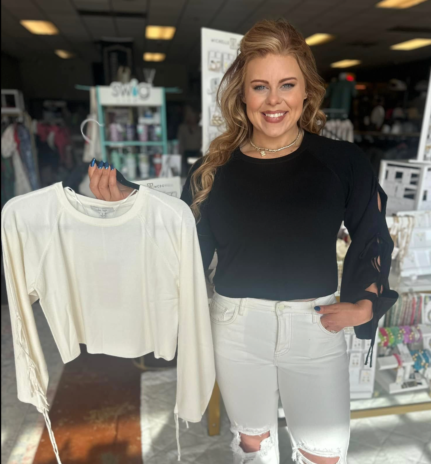 Elevate your style with our Tie Detail Cropped Long Sleeve. This top features a unique tie detail on the sleeve, adding a touch of sophistication to any outfit. The cropped length is perfect for pairing with high-waisted bottoms, making it a versatile piece in your wardrobe. Made with high quality fabric for comfort and durability.
